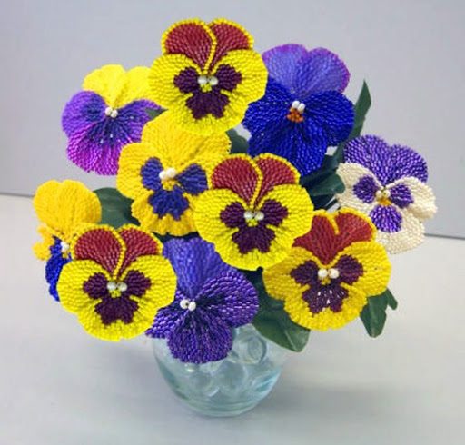 Современные мастера удачно сочетают бисер с драгоценными камнями, кожей, глиной. Если в начале создавались изделия в одной плоскости, то современной тенденцией является изготовление объемных работ, таких как жгуты, объемные цветы, создание композиций.