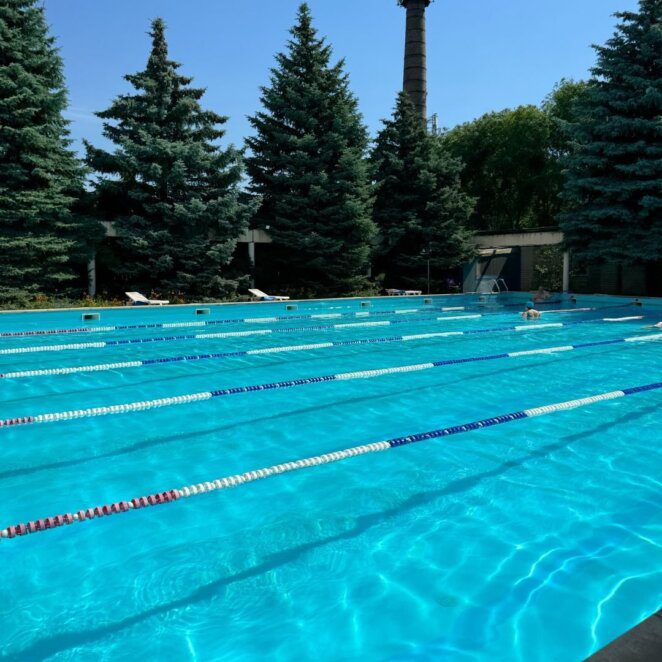 Бассейн оборудован современными системами очищения воды, поэтому за безопасность можно не волноваться. Днепряне отмечают чистоту воды и ее комфортную температуру, а также возможность плавать под открытым небом. Локация достаточно удобна и в вечернее время людей гораздо меньше, чем днем. Если говорить о недостатках, то чаще всего указывают на старые стены бассейна и отсутствие рельефа для безопасного выхода из воды. Также в час пик бассейн бывает переполнен, например, во время аквааэробики или групповых занятий.