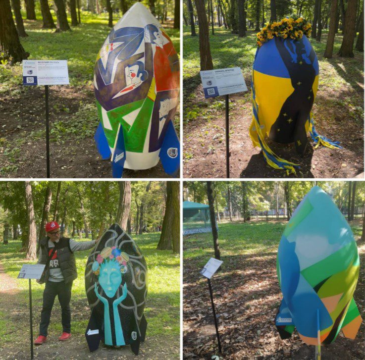 Выставка художественных ракет Noosphere Art Rocket Park открылась 2 октября, на территории парка ДНУ им. Олеся Гончара. Она насчитывает 23 полутораметровые скульптуры. На каждой изображен уникальный рисунок. Руководитель проекта Екатерина Логинова рассказывает, что изначально они на конкурсной основе выбирали эскизы, которые в итоге были нанесены на ракеты. Организаторы получили около полутысячи рисунков от художников со всей Украины. Из них выбрали 20 лучших дизайнов. Ещё три ракеты были созданы вне конкурса.