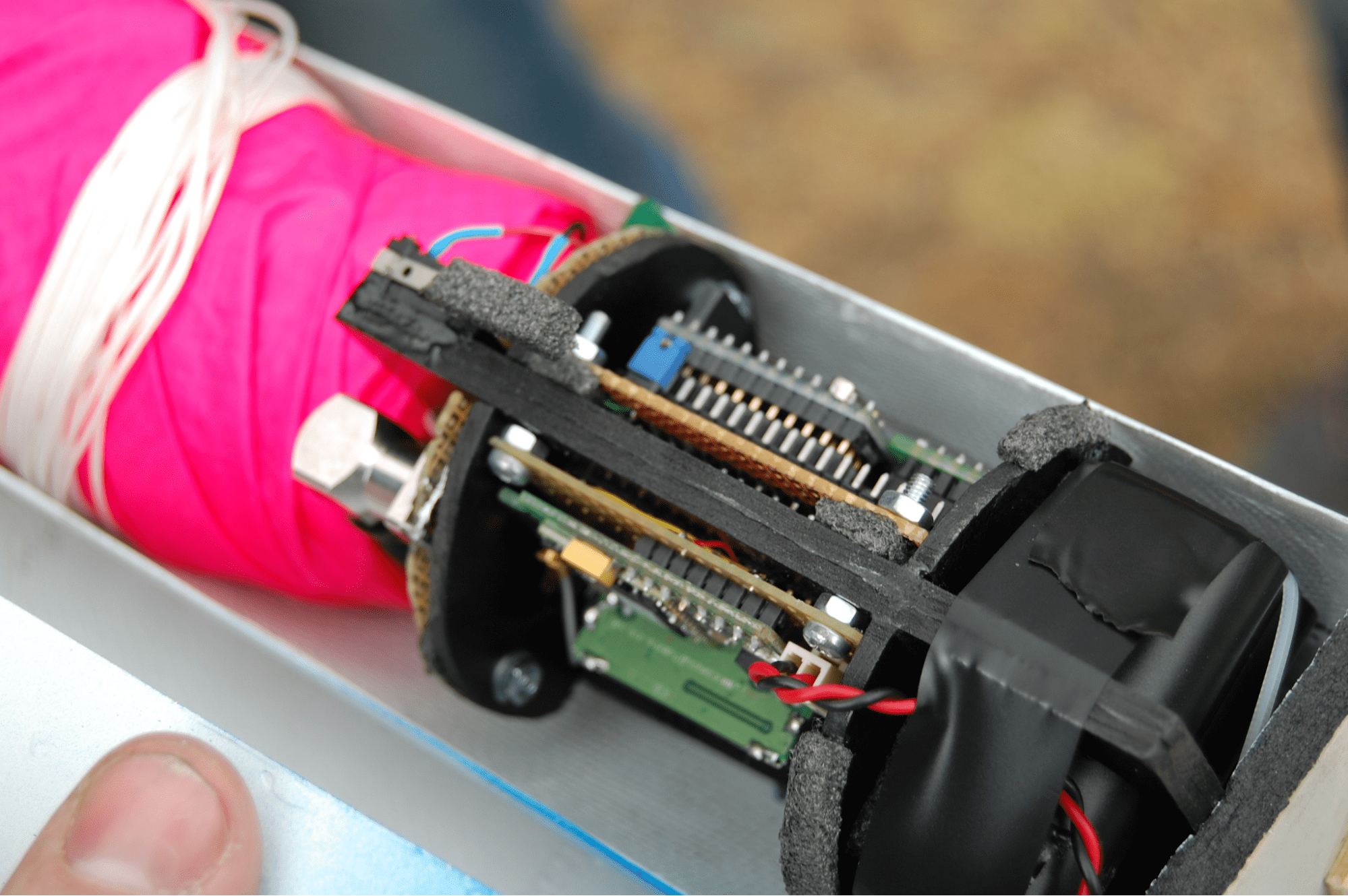 Тому Ігор робив свій CanSat самостійно. Його супутник – другий прототип “кансата” у Дніпрі і перший, який працює від вай-фаю. Достатньо просто підійти до супутника з телефоном, щоб отримати дані про політ: час, координати, висота, покази датчика кутової швидкості, прискорення, монітометру, температури та напруги на акумуляторах. Супутник з камерою – це як модель справжнього супутника для зондування землі, який може прогнозувати зміни клімату, передбачати врожаї та пожежі, визначити енерговитрати будинків.