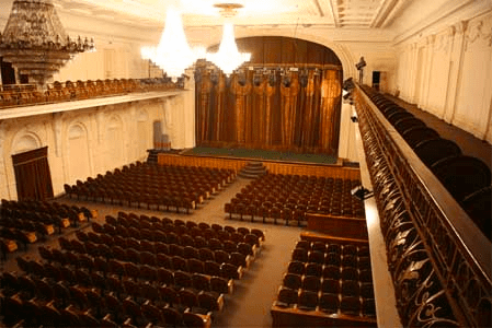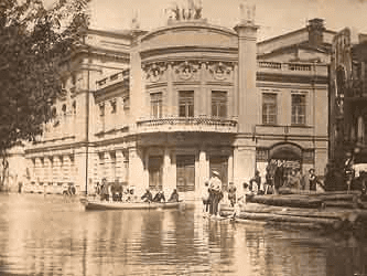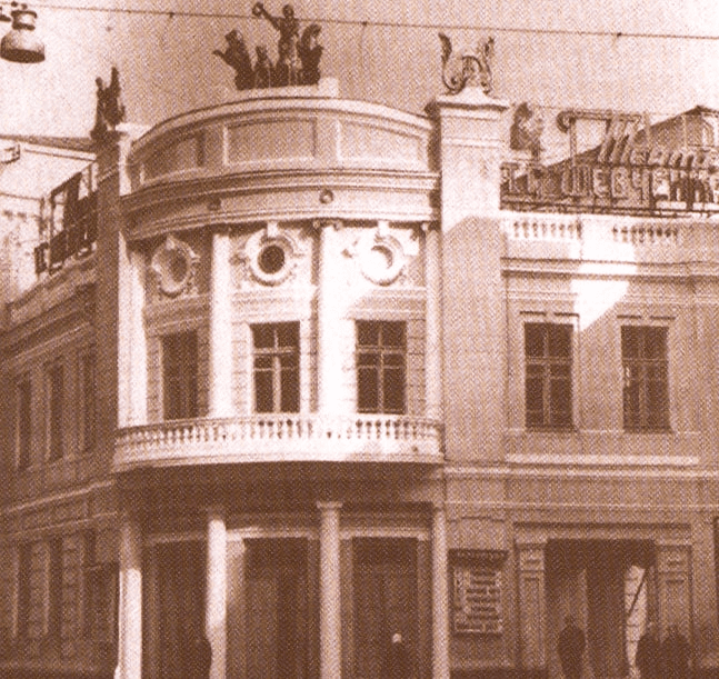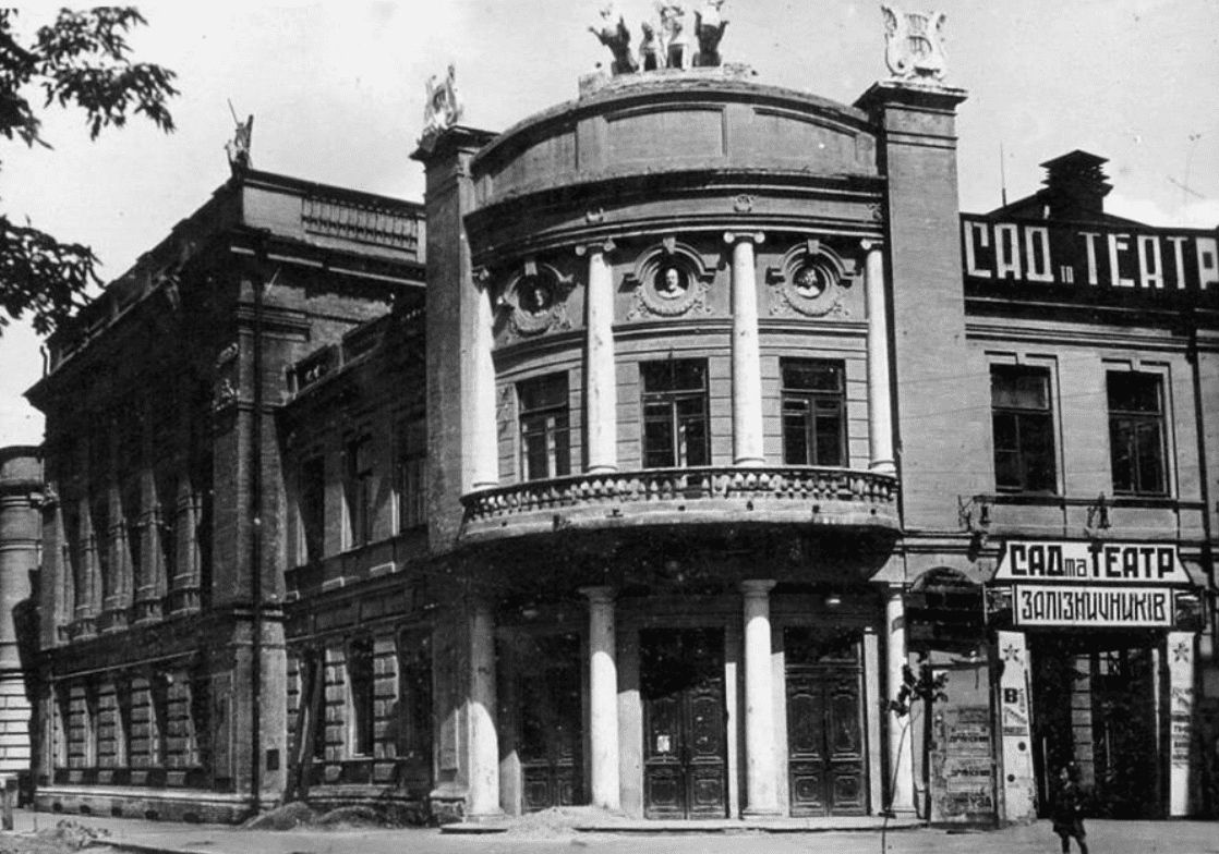 Спочатку театр розміщувався у “Англійському клубі” по вулиці Воскресенській. Це був невеликий двоповерховий будинок з прибудованим театральним залом з нижнім та верхнім фоє, з мармуровими сходами та окремим входом.