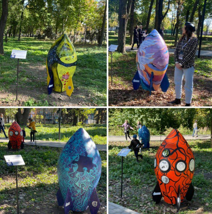 Виставка художніх ракет Noosphere Art Rocket Park відкрилася 2 жовтня, на території парку ДНУ ім. Олеся Гончара. Вона налічує 23 півтораметрові скульптури. На кожній зображений унікальний малюнок. Керівниця проєкту Катерина Логінова розповідає, що спочатку організатори на конкурсній основі вибирали ескізи, які в підсумку й були нанесені на ракети. Вони отримали близько півтисячі малюнків від художників з усієї України. З них вибрали 20 кращих дизайнів. Ще три ракети були створені поза конкурсом.