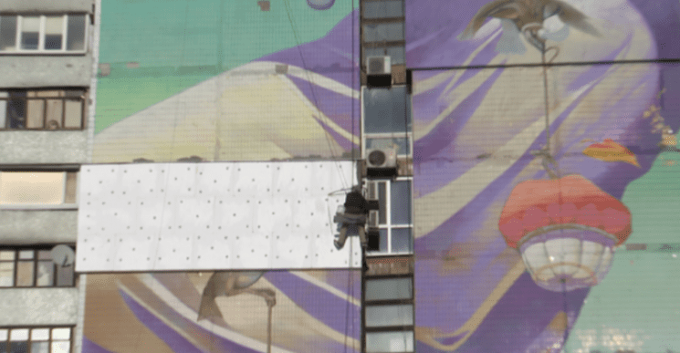 До зими залишилось мало часу, а підготуватись до зими треба як слід. Тому, один із жителів багатоповерхового дому Дніпра вирішив принести у жертву найбільший мурал, який знаходиться на вулиці Маршала Малиновського, і на цьому муралі тепер з’явився білий, обшитий утеплювачем прямокутник.