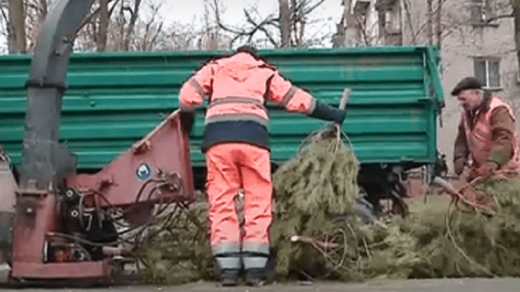 Під час подрібнення ялинок на дрібні тріски завжди шумно, на теперішній час кипить робота у місцевих робітників щодо утилізації новорічних головних прикрас свята. Таким чином, суху деревину трансформують в корисну сировину для рослин. Далі на idnepryanin.com.